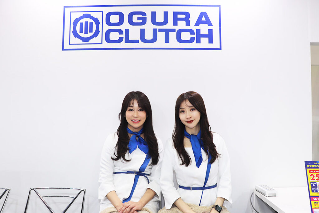 小倉クラッチ ― 華やかな衣装のアテンダントが目を引くブースでは、昨年同様に田村亮さんが出演!