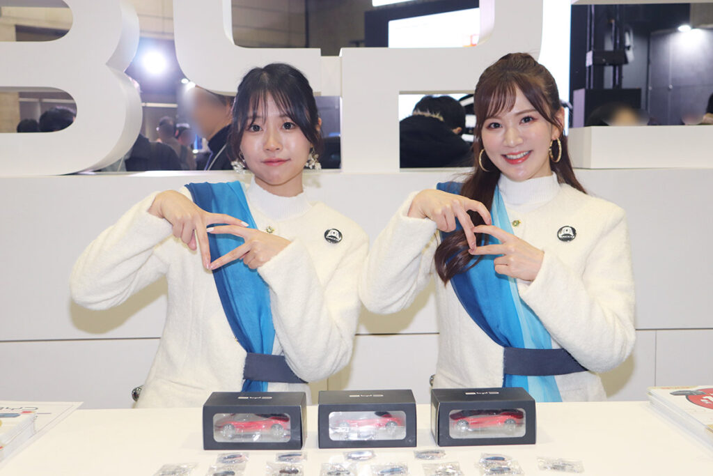 BMW・BYDなど多様な企業が軒を連ね、それぞれの「顔」であるアテンダントが活躍していました。