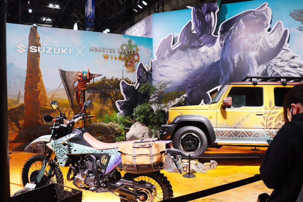 左:スズキ×モンスターハンターワイルズ コラボ 右:スズキブースで活躍中の当社キャスティングのアテンダント
