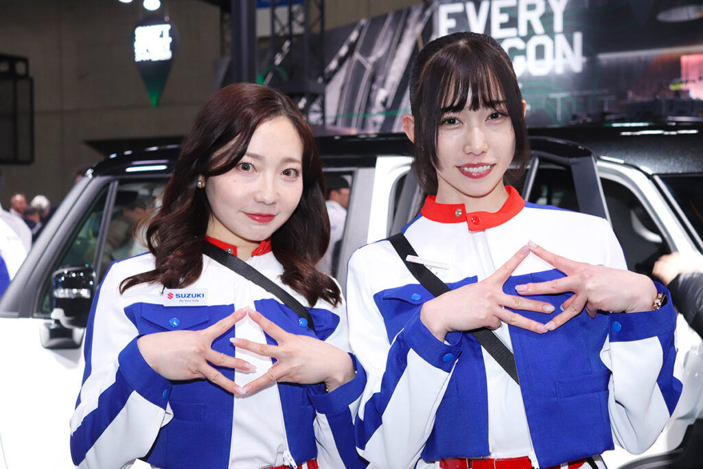 スズキブースでは、活力にあふれたアテンダント達の姿を発見!